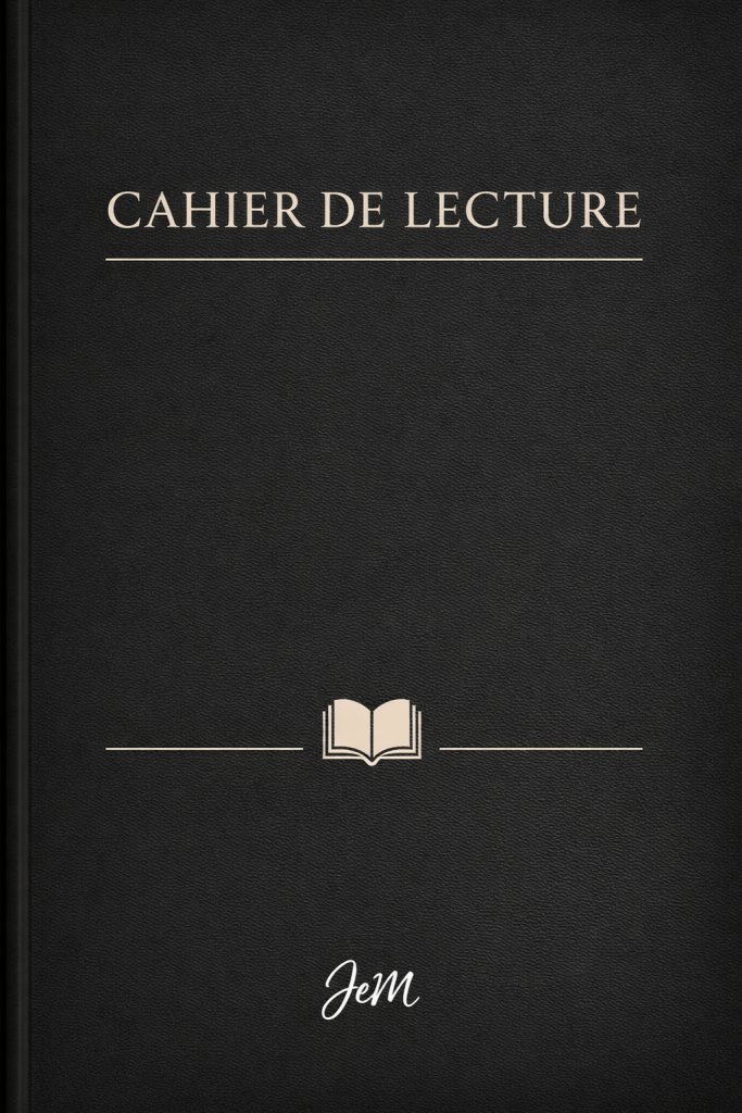 Ce cahier de lecture a été conçu pour garder une trace de chaque livre lu, de chaque ressenti, de chaque phrase marquante.